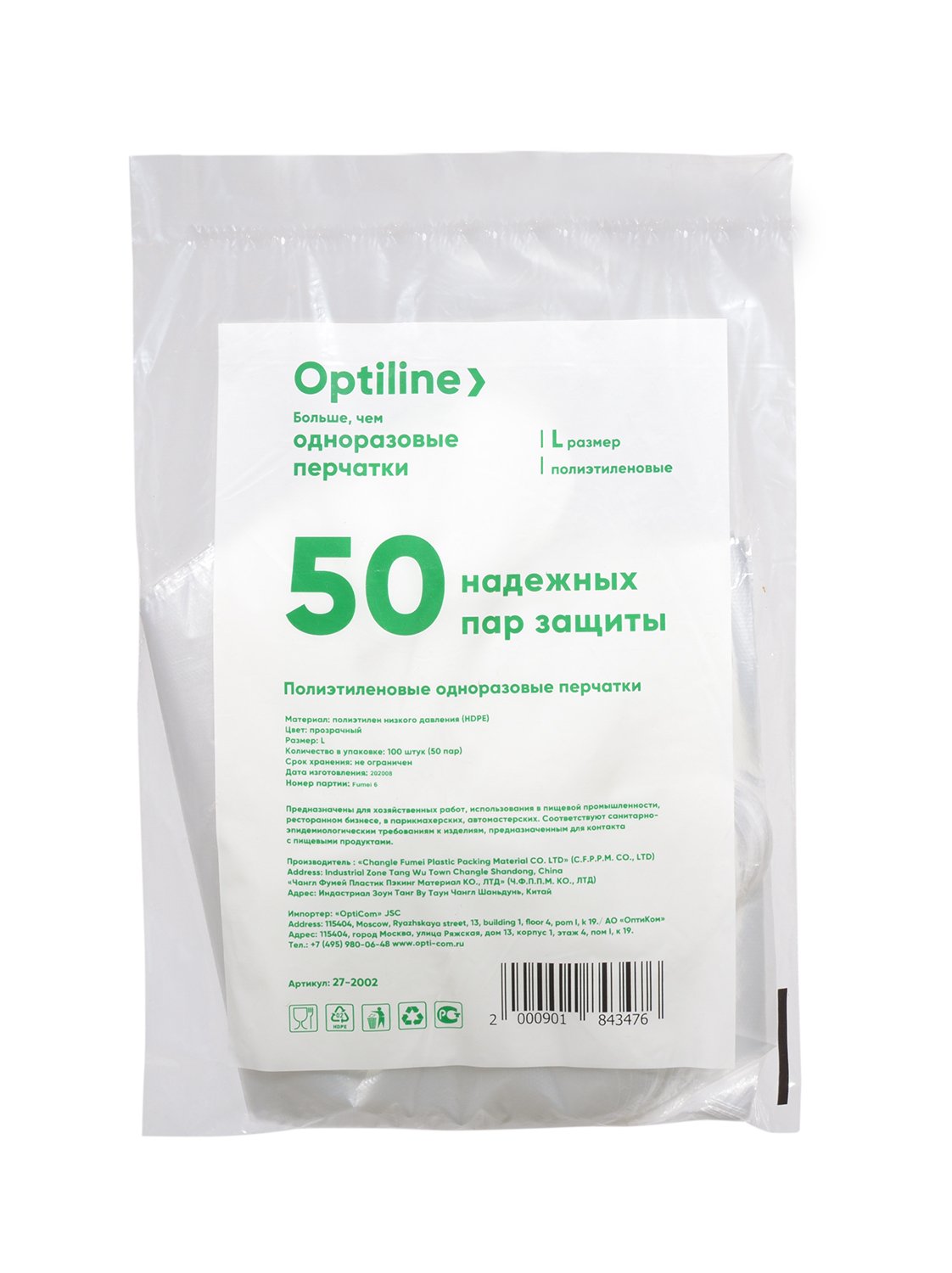 Перчатки однораз. "OptiLine" L 100шт (1уп/100)