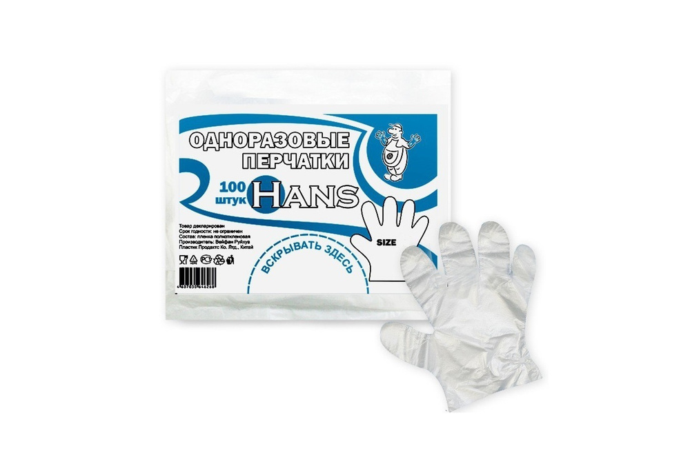 Перчатки однораз. ПЭ "HANS" L 100шт АП (1уп/100)