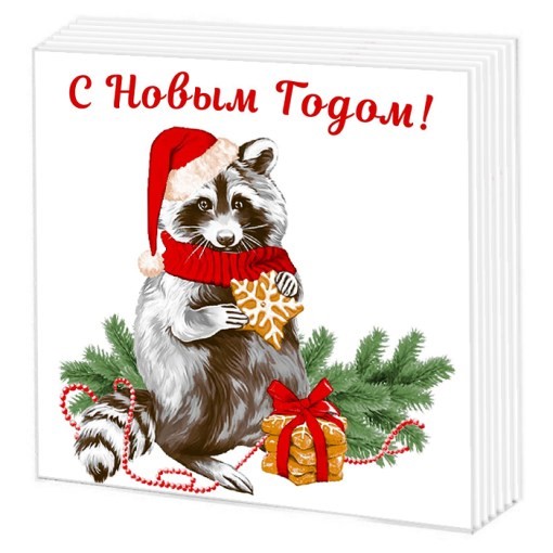 Количество товара Салфетка бум.50л Новогодний енот (24*24) 1/60уп