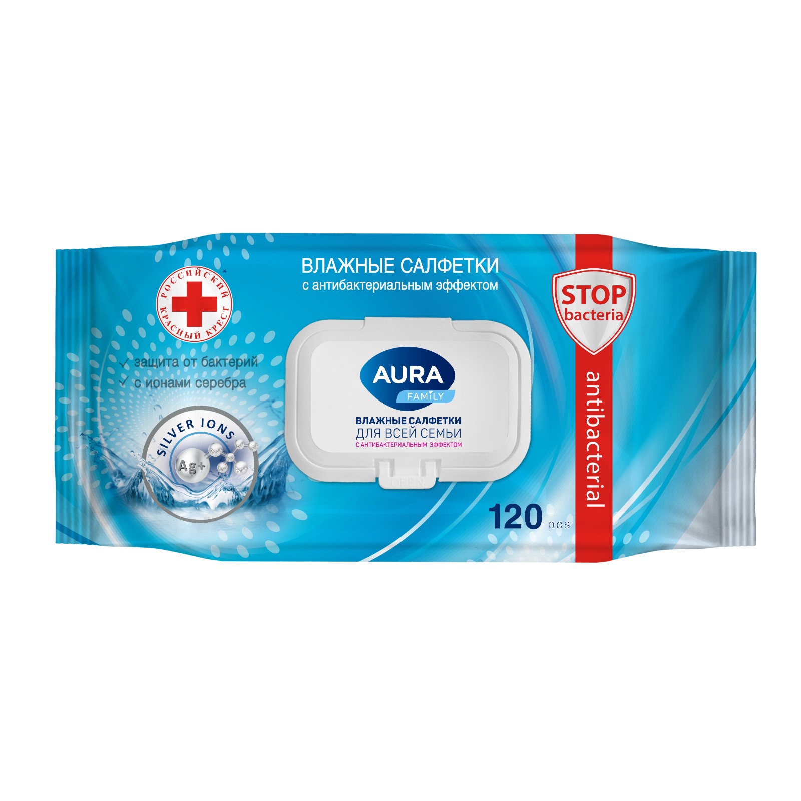 Салфетки влажные Аура с клапаном 120шт (1пачка/12)