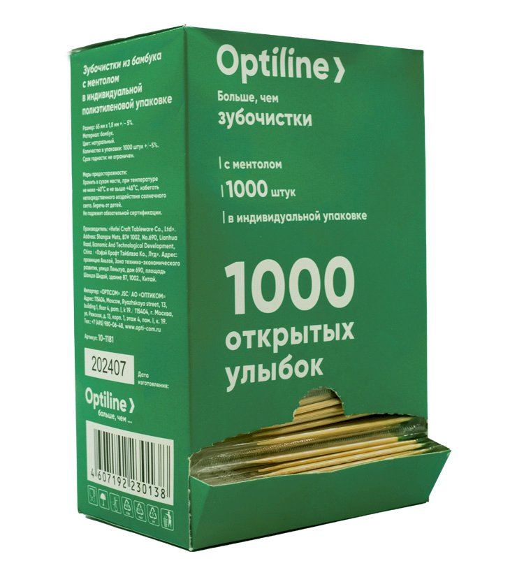 Количество товара Зубочистка в инд. уп. МЕНТОЛ 1000шт ОР (1уп/36уп)
